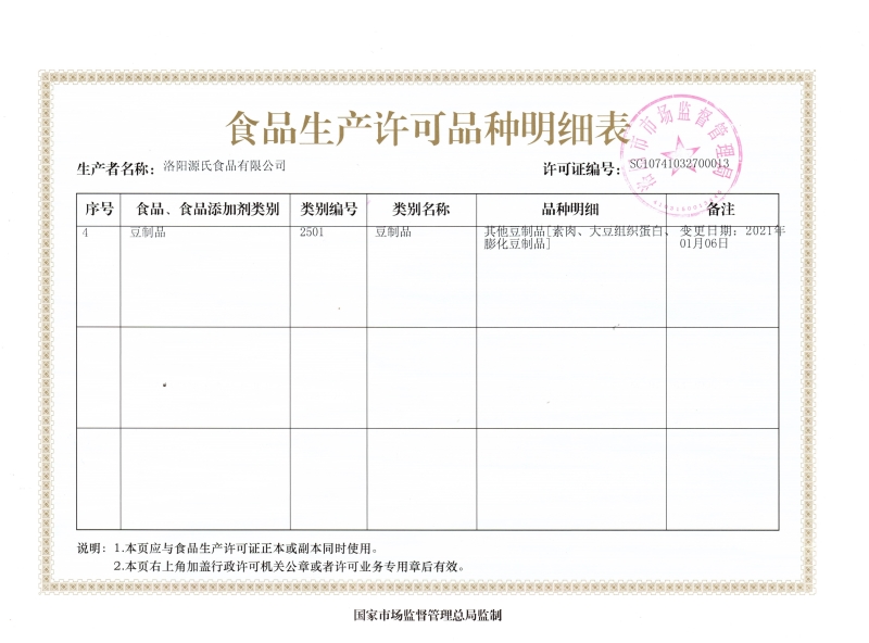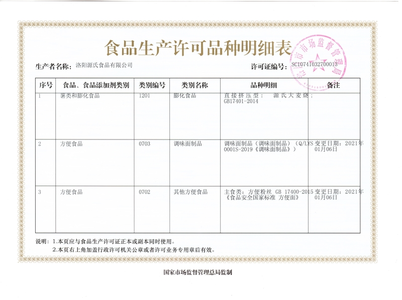 凯时食物生产允许证及细节列表